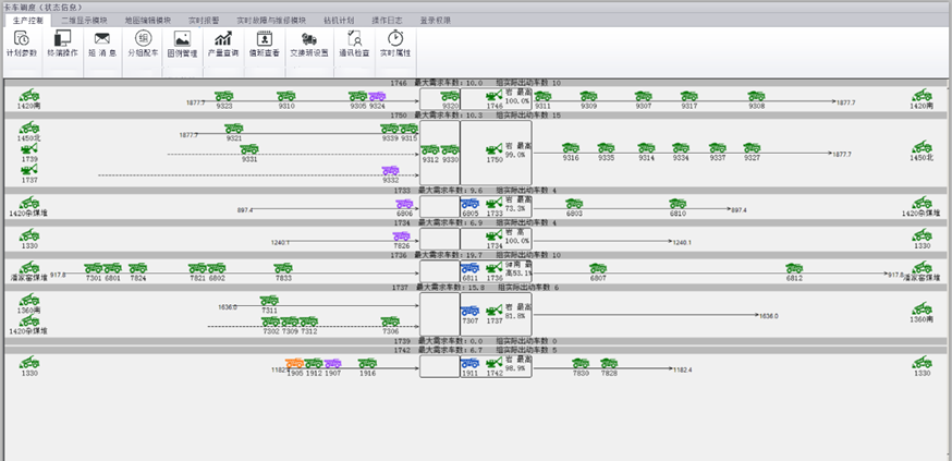 本次系統(tǒng)的實施范圍是在城門山銅礦建立一整套覆蓋整個采區(qū)的包含生產(chǎn)調(diào)度車載終端、采礦場調(diào)度室控制中心、系統(tǒng)軟件等在內(nèi)的露天采礦車輛調(diào)度系統(tǒng)。實現(xiàn)采運作業(yè)的實時遠程自動化生產(chǎn)指揮和生產(chǎn)管理,實現(xiàn)露天礦所有生產(chǎn)數(shù)據(jù)實時在網(wǎng)、在線。利用現(xiàn)代高新技術(shù)和先進科學(xué)的管理手段,對露天礦挖機、自卸卡車、破碎站、排土場及輔助作業(yè)設(shè)備工藝范圍內(nèi)的主要設(shè)備進行實時優(yōu)化調(diào)度、管理和監(jiān)控。